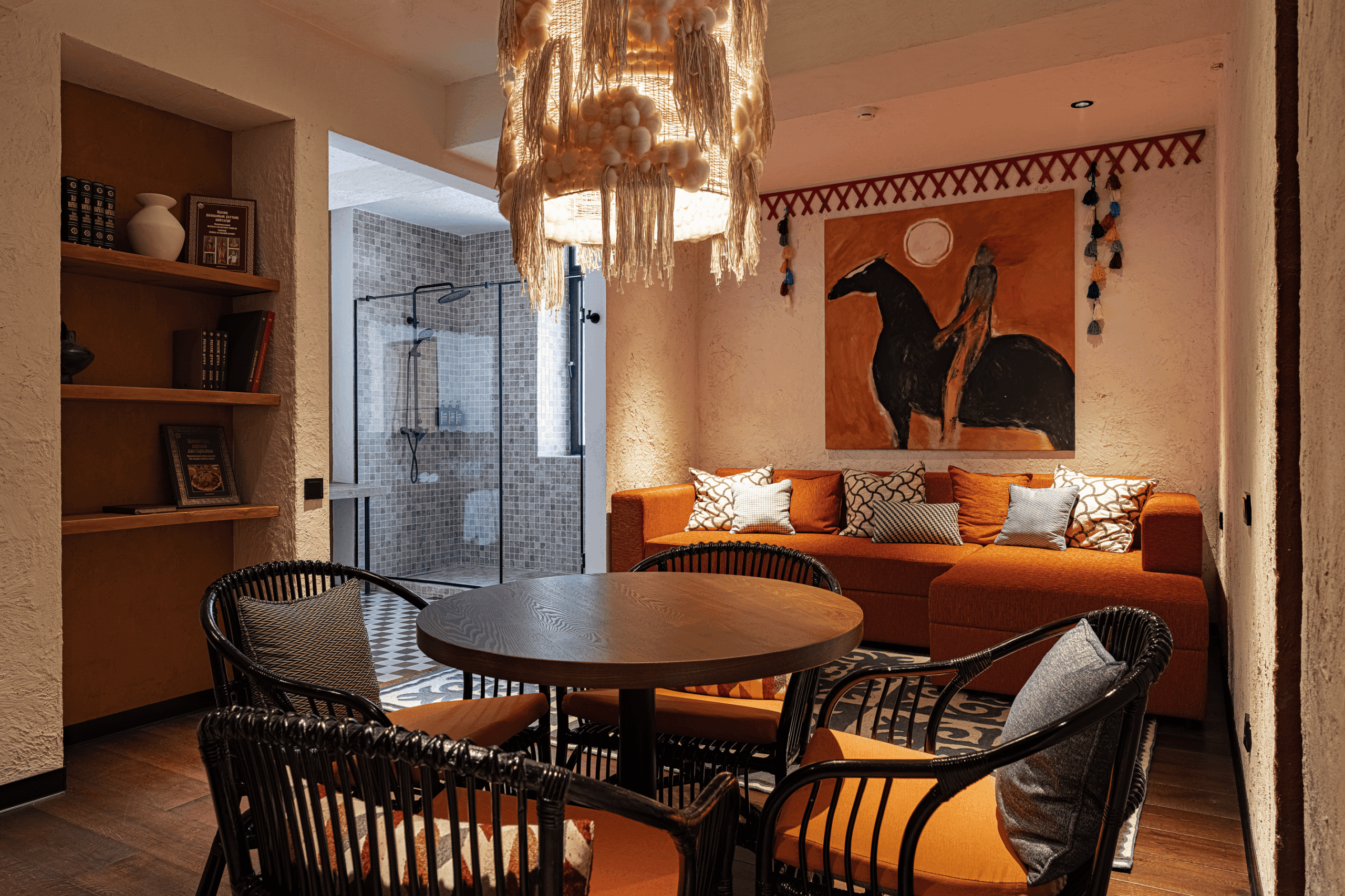Suite - spacious two-room suite in a boutique hotel YURTA ALMATY for those who want to "live in a room", not just spend the night. There is a separate lounge area with upholstered furniture and a full bedroom - convenient both for quiet family living and for trips where you want more personal space.