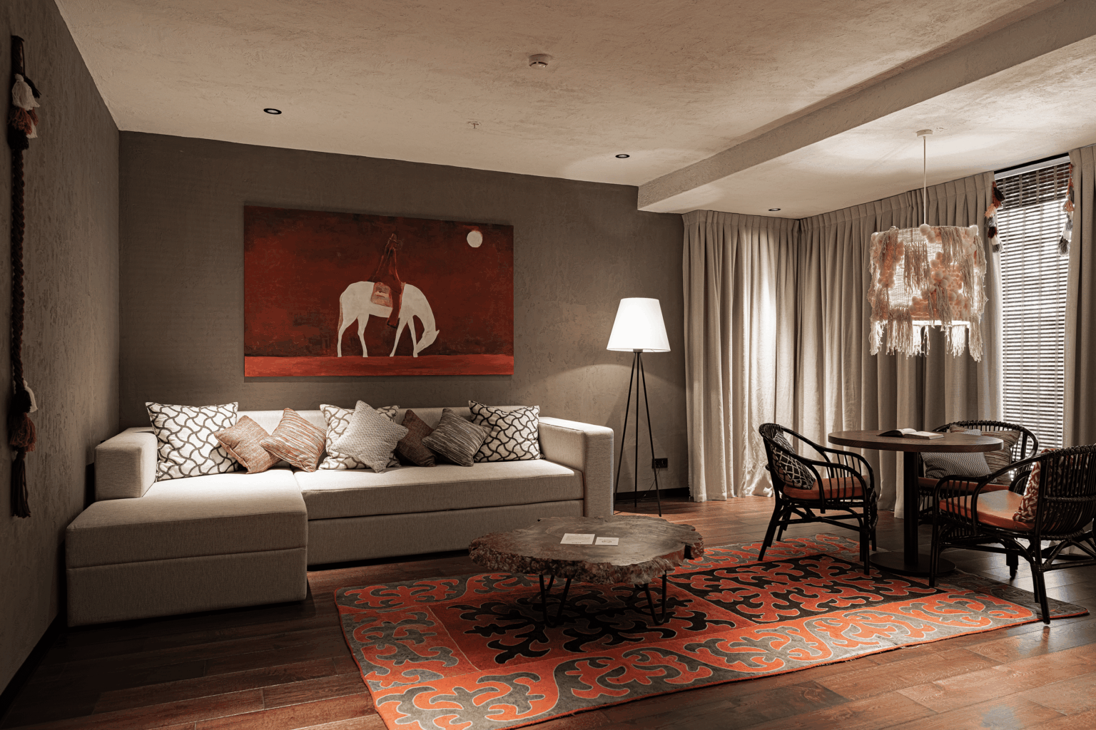 Junior Suite - the most "residential" format of accommodation in a boutique hotel YURTA ALMATYwhen you don't just want to spend the night, you really want to relax in a spacious room with a separate relaxation area.