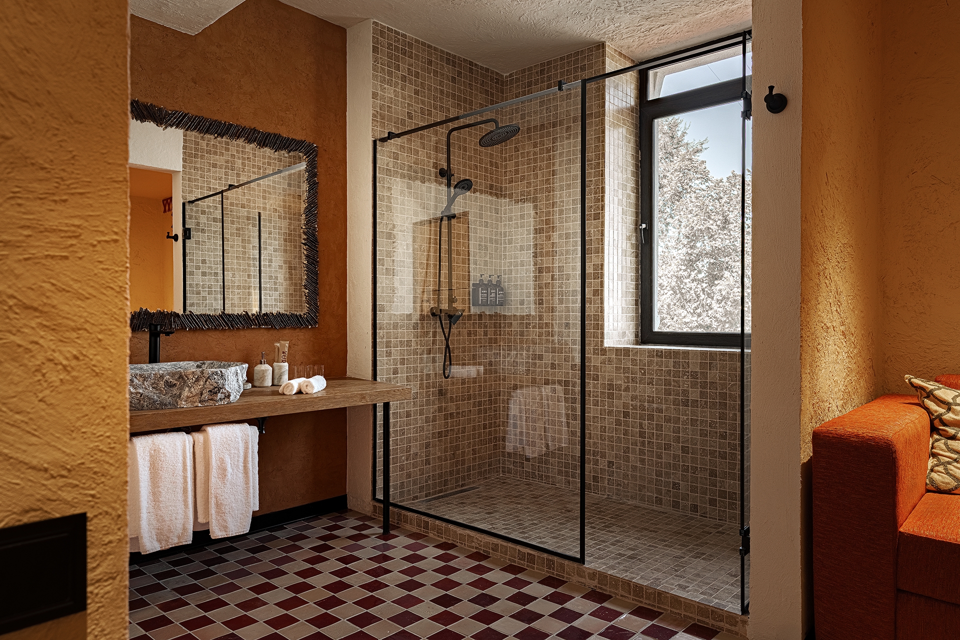 Барлық жиһаздарды жергілікті шеберлер жасайды. Әрбір бөлме табиғи материалдар мен шынайы сәндік элементтерді пайдалана отырып, жеке этникалық стильде безендірілген.